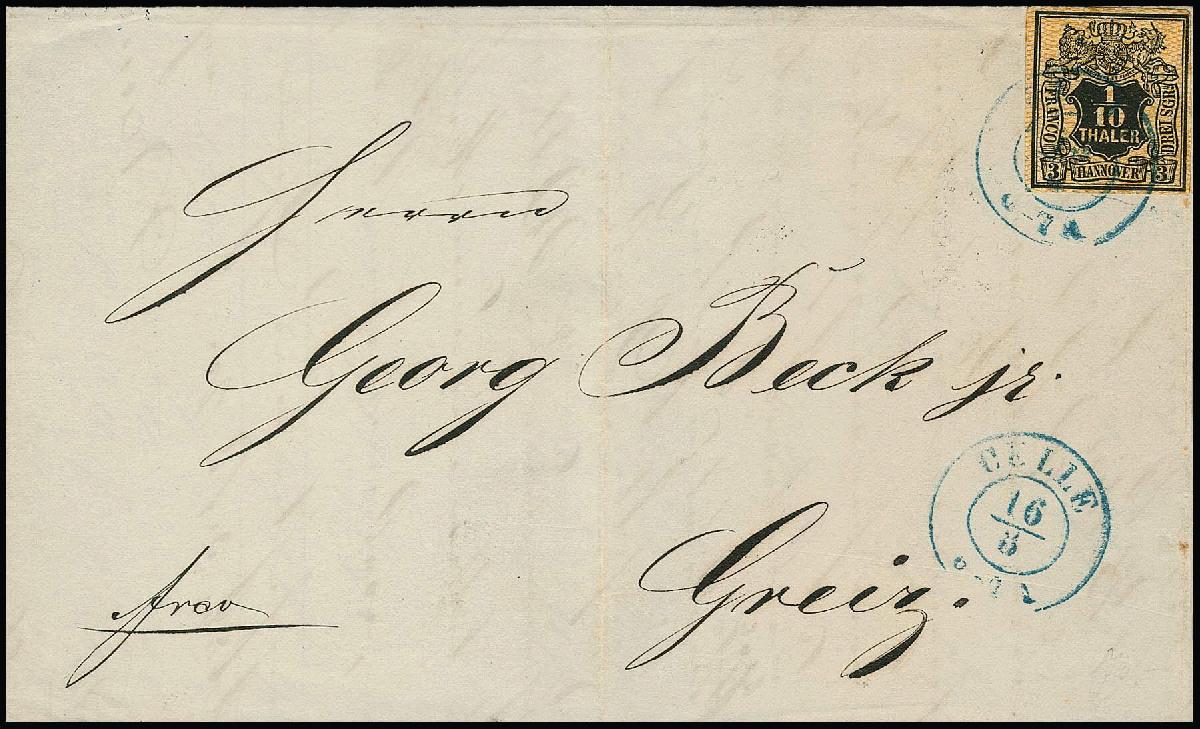 | Zusatzinformationen und Suchstichworte: | Rauhut & Kruschel - 213. Auktion 16. - 17. September 2022 Los 1974 Altdeutschland Hannover 1/10 Th. schwarz, Netzwerk orange bzw. gelb, je tadellose Exemplare auf Faltbriefen aus Celle bzw. Harburg, Nr. 7b Attest Berger. Mi. 1300,- Ausruf 300,00 EUR |