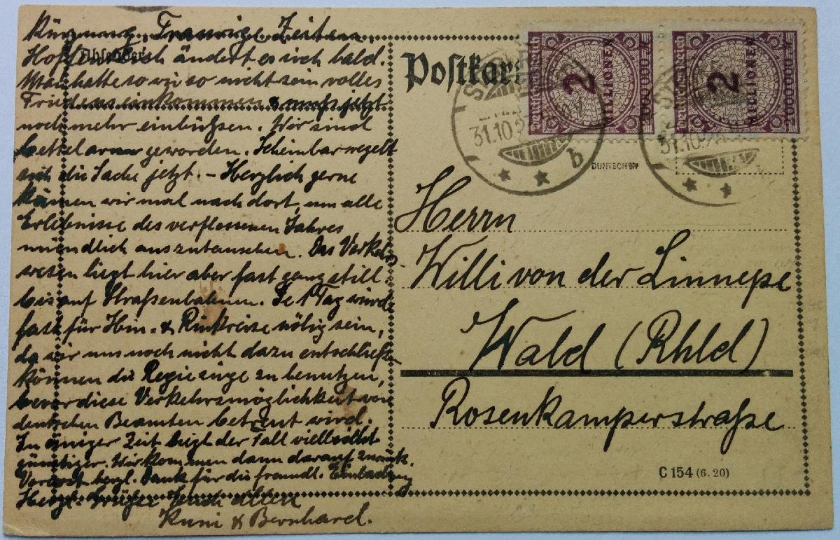 | Zusatzinformationen und Suchstichworte: | Fernpostkarte, Mehrfachfrankatur, senkrechtes Paar |
