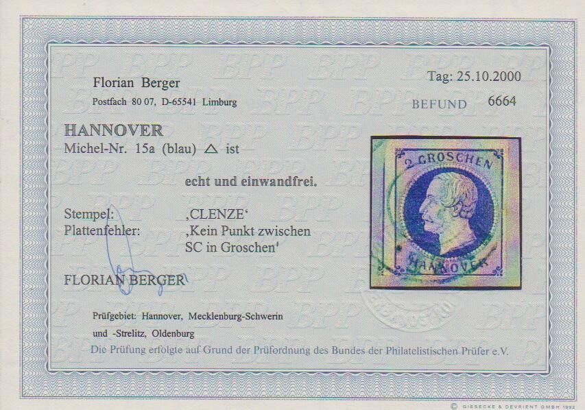 | Prüfer: | Berger, Florian (BPP (Bund Philatelistischer Prüfer)) |