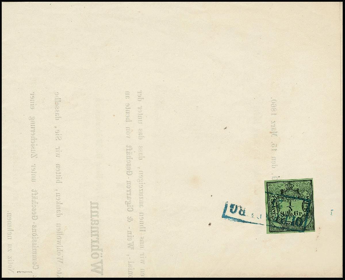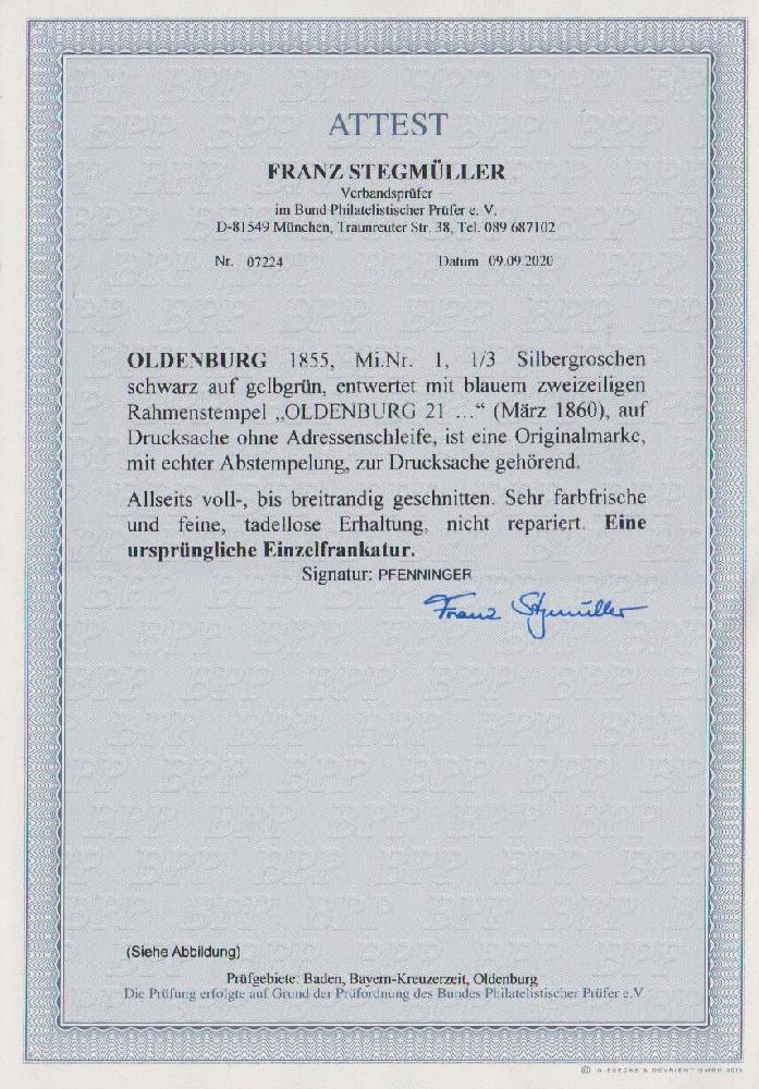 | Zusatzinformationen und Suchstichworte: | Rauhut & Kruschel - 213. Auktion 16. - 17. September 2022 Los 148 Altdeutschland Oldenburg 1/3 Sgr. schw./gelbgrün, Kabinettstück auf Drucksache (ohne Adreßschleife) aus Oldenburg (Ra2). Völlig ursprüngliche, tadellose Erhaltung, Atteste Pfenninger und Stegmüller. Mi. 3000,- Ausruf 1.000,00 EUR |