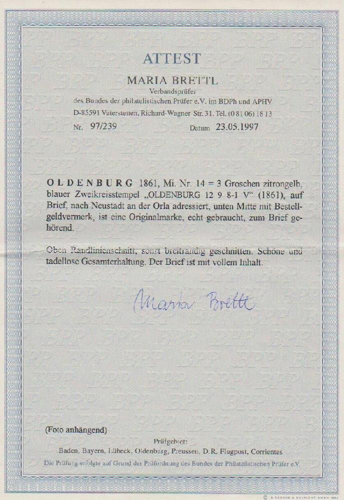| Zusatzinformationen und Suchstichworte: | Rauhut & Kruschel - 213. Auktion 16. - 17. September 2022 Los 160 Altdeutschland Oldenburg 3 Gr. zitronengelb, oben noch voll-, sonst breitrandig, auf Prachtbrief von Oldenburg nach Neustadt/Orla. Völlig ursprüngliche Erhaltung mit Inhalt, Attest Brettl "tadellose Gesamterhaltung". Mi. 2200,- Zuschlag 600,00 EUR |