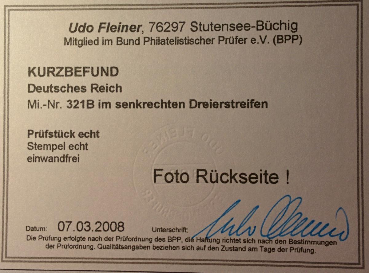 | Prüfer: | Fleiner, Udo (BPP (Bund Philatelistischer Prüfer)) |
