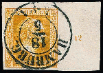 | Zusatzinformationen und Suchstichworte: | Rauhut & Kruschel - 213. Auktion 16. - 17. September 2022 Los 194 Altdeutschland Preussen 3 Sgr. orange, Kabinettstück mit 15,5mm breitem Bogenrand rechts, Reihenzahl "12" und zentrischer K2 "Hamburg", sign. Kastaun mit Attest und Banker Zuschlag 135,00 EUR |