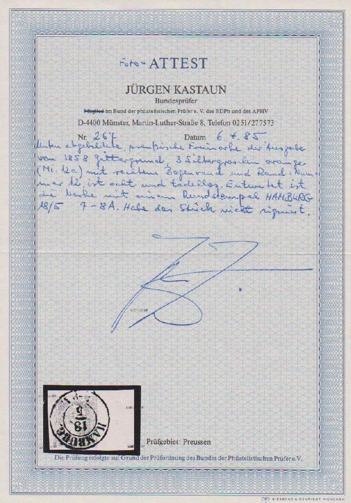 | Prüfer: | Kastaun, Jürgen (BPP (Bund Philatelistischer Prüfer)) |