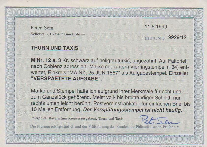 | Prüfgebiet: | Altdeutschland Thurn und Taxis |