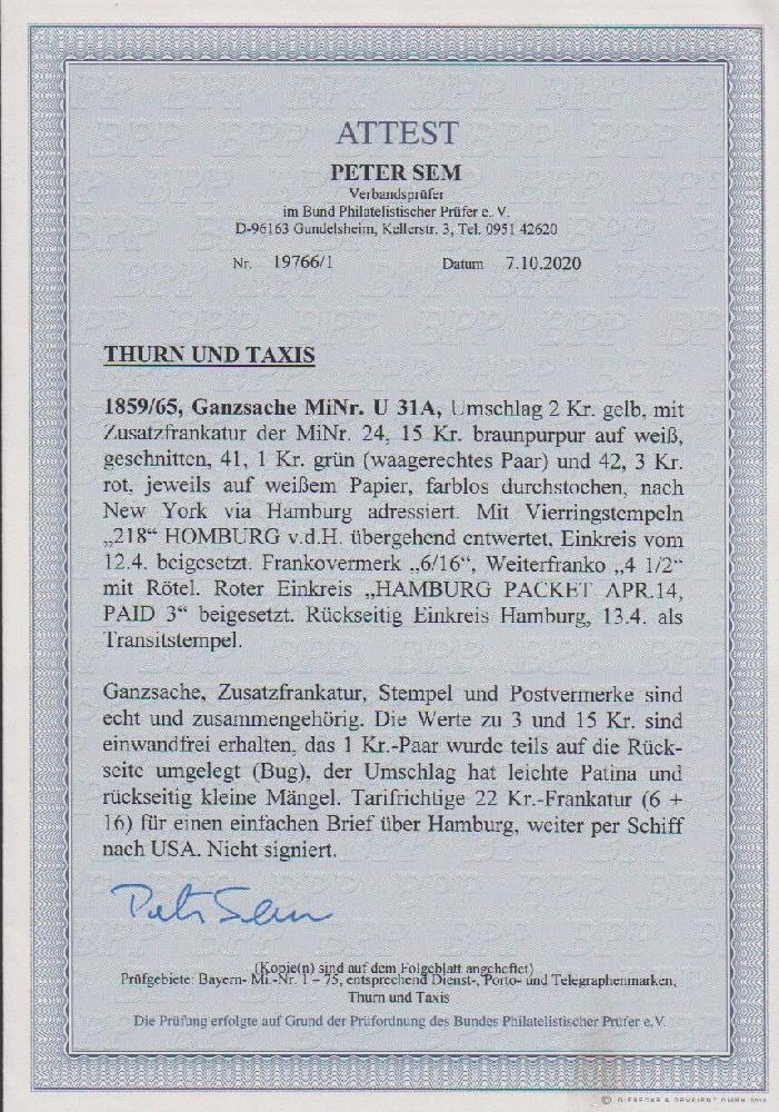 | Prüfgebiet: | Altdeutschland Thurn und Taxis |