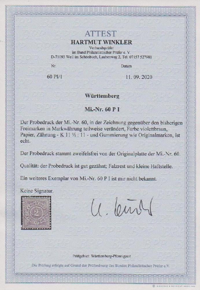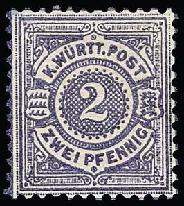| Zusatzinformationen und Suchstichworte: | Rauhut & Kruschel - 213. Auktion 16. - 17. September 2022 Los 262 Altdeutschland Württemberg 2 Pfg. bräunlichviolett, ungebrauchter Probedruck, bisher einzig bekanntes Exemplar und insofern ein Unikat, wie auch das Attest Winkler (2020) bestätigt Ausruf 1.500,00 EUR |