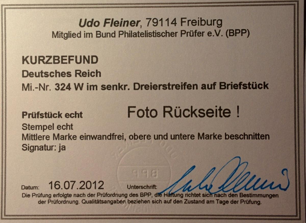 | Prüfer: | Fleiner, Udo (BPP (Bund Philatelistischer Prüfer)) |