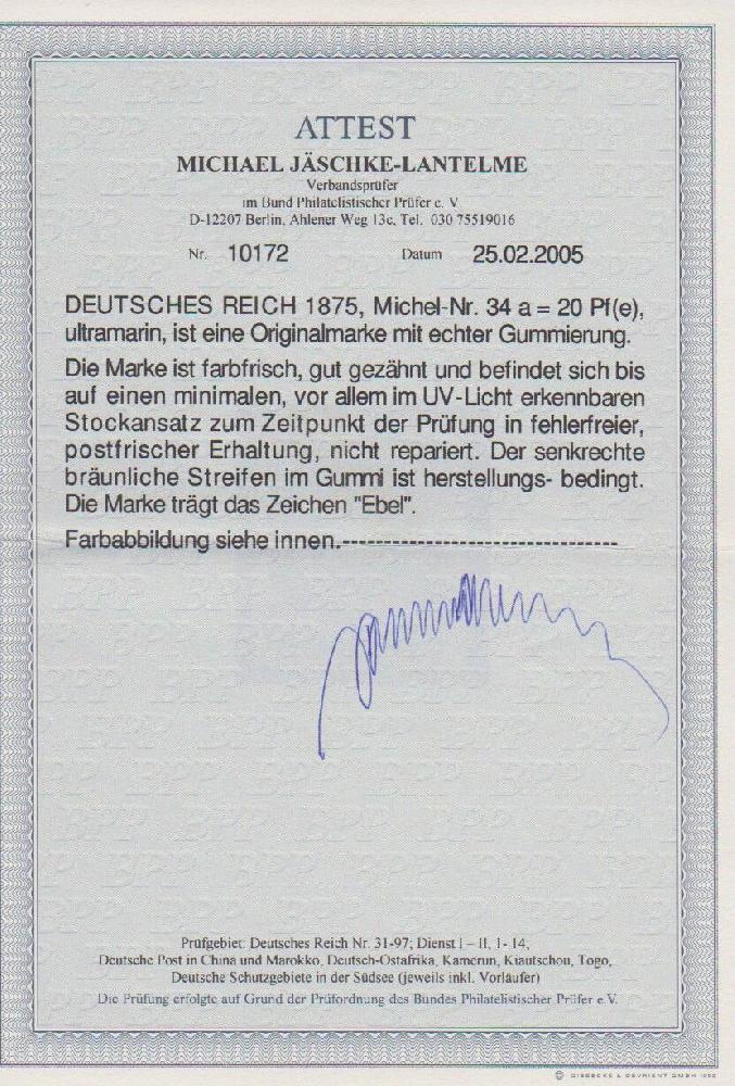 | Prüfer: | Jäschke-Lantelme, Michael (BPP (Bund Philatelistischer Prüfer)) |