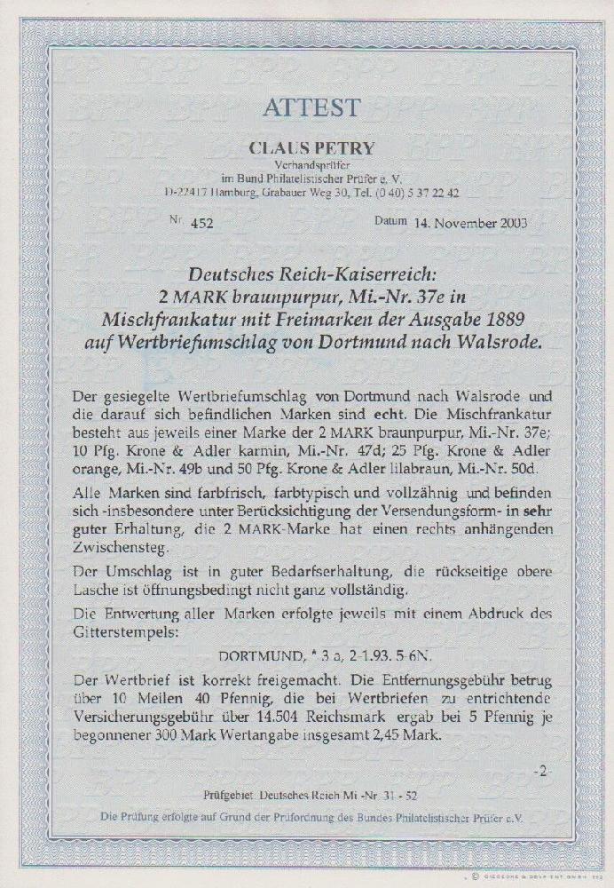 | Prüfgebiet: | Deutsches Reich 1871 - 1918 (Mi-Nr. 1 - 106) |