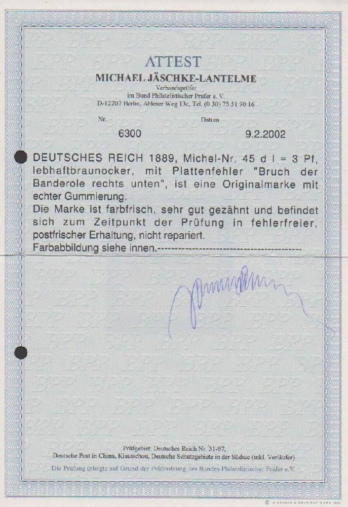 | Prüfgebiet: | Deutsches Reich 1871 - 1918 (Mi-Nr. 1 - 106) |