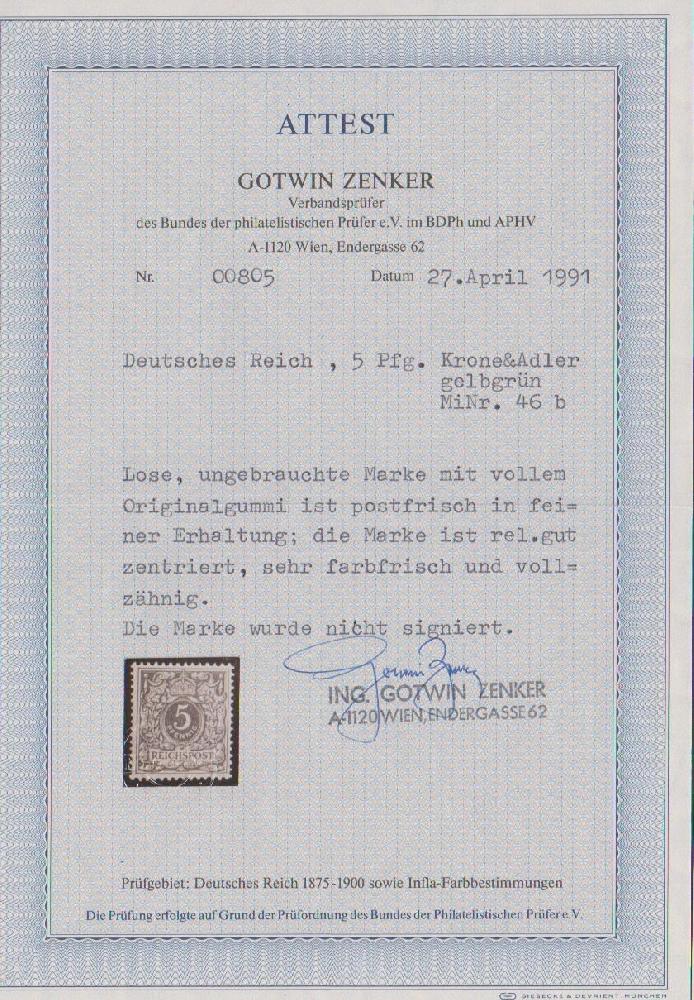 | Prüfgebiet: | Deutsches Reich 1871 - 1918 (Mi-Nr. 1 - 106) |