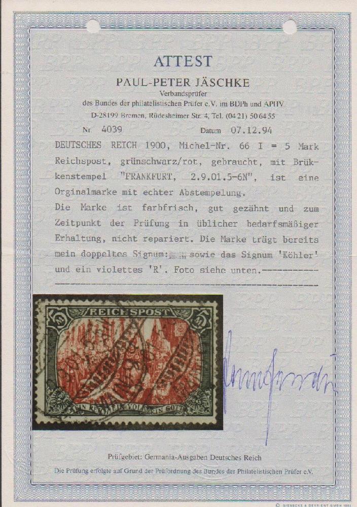 | Prüfer: | Jäschke, Paul Peter (BPP (Bund Philatelistischer Prüfer)) |