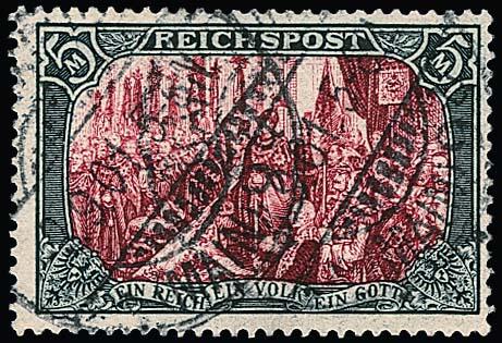 | Zusatzinformationen und Suchstichworte: | Rauhut & Kruschel - 213. Auktion 16. - 17. September 2022 Los 327 Deutsches Reich, Germania Reichspost 5 Mk. Reichspost in seltener Type I gestempelt. Sign. Köhler Ausruf 700,00 EUR |