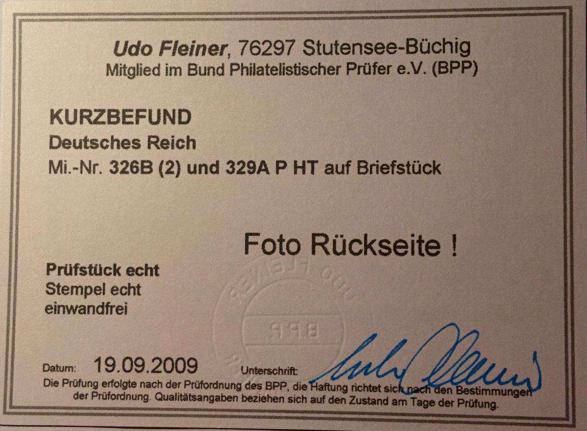 | Zusatzinformationen und Suchstichworte: | Gestempelt, 326 B waagerechtes Paar, 329 A P HT, Briefstück |