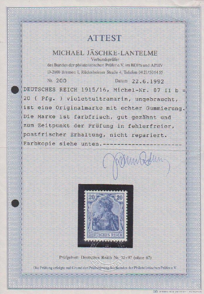 | Prüfgebiet: | Deutsches Reich 1871 - 1918 (Mi-Nr. 1 - 106) |