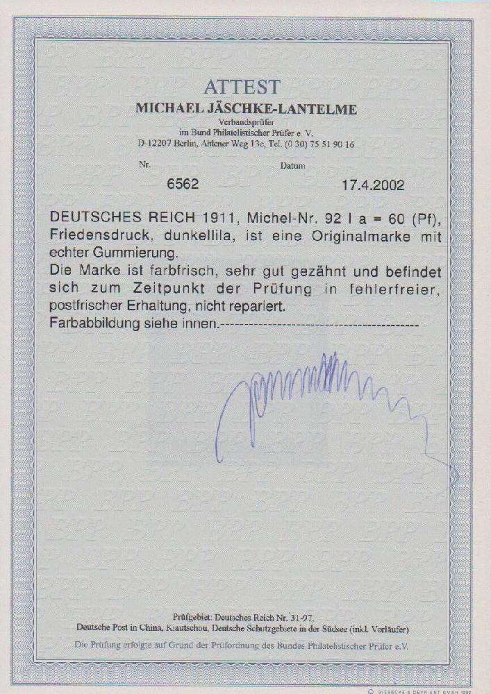 | Prüfer: | Jäschke-Lantelme, Michael (BPP (Bund Philatelistischer Prüfer)) |