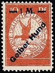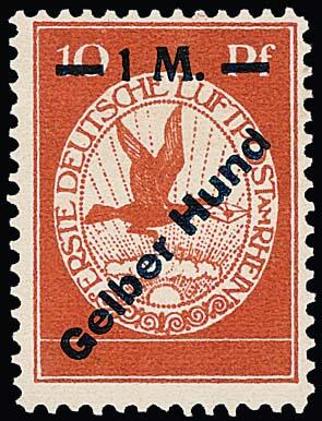 | Zusatzinformationen und Suchstichworte: | Rauhut & Kruschel - 213. Auktion 16. - 17. September 2022 Los 350 Deutsches Reich, Germania mit WZ Flugpost 1 Mk. a. 10 Pfg., sog. "Gelber Hund" postfrisch, Mi. 2800,- Ausruf 700,00 EUR |