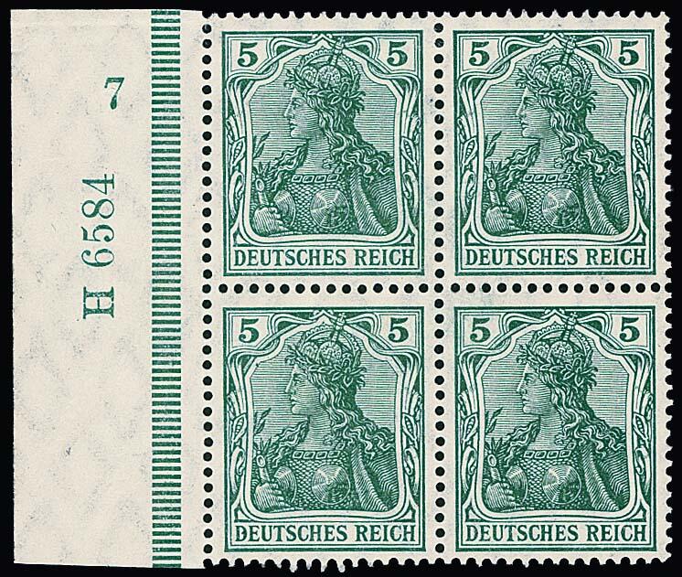 | Zusatzinformationen und Suchstichworte: | Rauhut & Kruschel - 213. Auktion 16. - 17. September 2022 Los 5680 Deutsches Reich, Germania mit WZ 5 Pfg. smaragdgrün im von der guten Farbe seltenen HAN-Viererblock mit HAN "6584". Die linke obere Marke ist ungebraucht, die restlichen postfrisch. Mi. lose Marken 585,- + HAN! Ausruf 200,00 EUR |