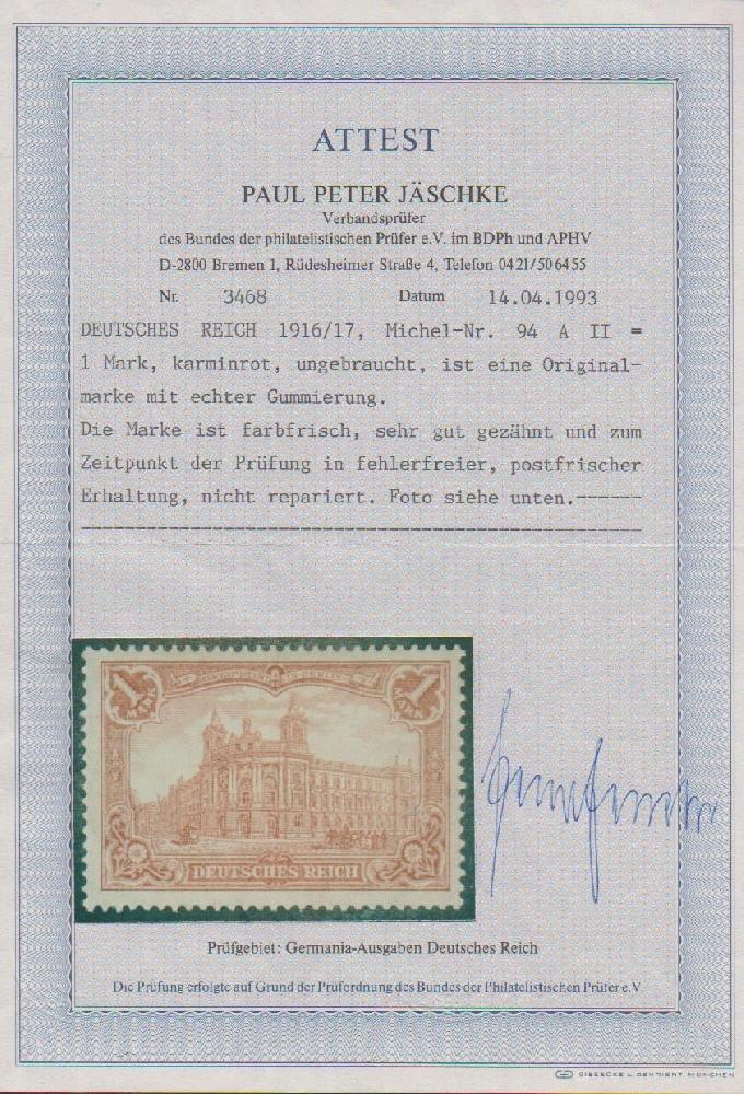 | Prüfer: | Jäschke, Paul Peter (BPP (Bund Philatelistischer Prüfer)) |