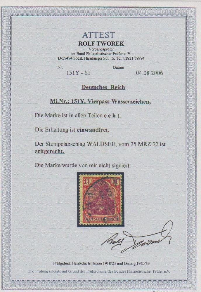 | Prüfgebiet: | Deutsches Reich 1919 - 1923 (Mi-Nr. 107 - 343) |