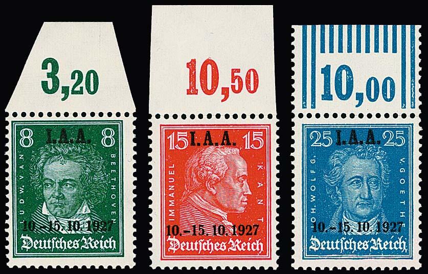 | Zusatzinformationen und Suchstichworte: | Rauhut & Kruschel - 213. Auktion 16. - 17. September 2022 Los 5855 Deutsches Reich, 1923/32 Weimarer Republik IAA komplett als postfrische Oberrandserie, 8 u. 15 Pfg. Platte, 25 Pfg. Walze, typische leichte Vorfaltung in der Zähnung im Oberrand, Fotoexp. D. Schlegel "einwandfrei". Mi. 900,- Zuschlag 150,00 EUR |