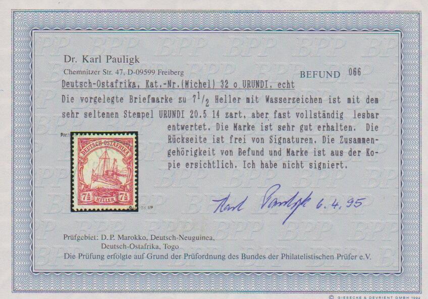 | Zusatzinformationen und Suchstichworte: | Rauhut & Kruschel - 213. Auktion 16. - 17. September 2022 Los 373 Deutsche Kolonien Ostafrika 7 1/2 H. mit klarer und seltener Abstempelung durch Stempel "Urundi" Ausruf 500,00 EUR |