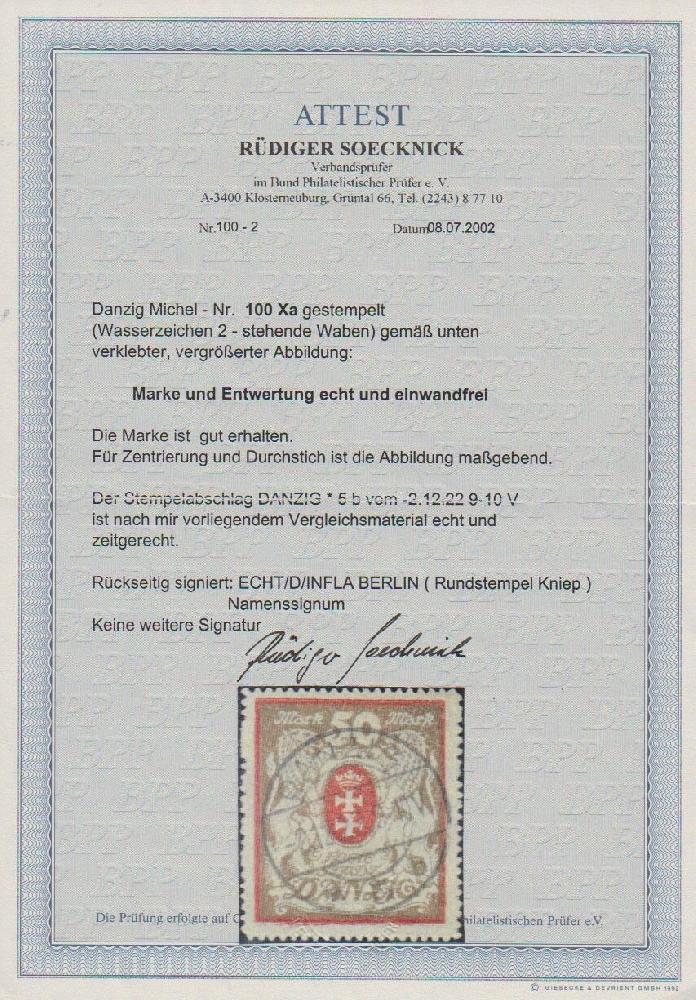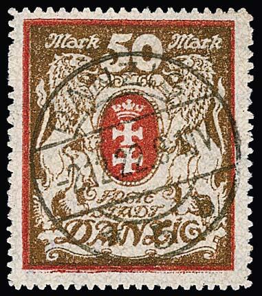 | Zusatzinformationen und Suchstichworte: | Rauhut & Kruschel - 213. Auktion 16. - 17. September 2022 Los 6674 Danzig 50 Mk., Wz. 2X, besonders schön zentrisch gestempeltes Luxusstück ("Danzig"), Mi. 800,- Ausruf 200,00 EUR |