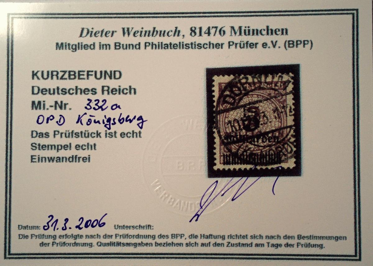 | Prüfgebiet: | Deutsches Reich 1919 - 1923 (Mi-Nr. 107 - 343) |