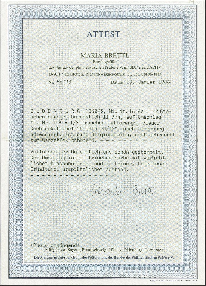 | Prüfgebiet: | Altdeutschland Oldenburg |