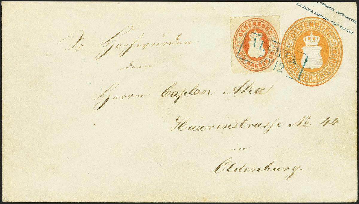 | Zusatzinformationen und Suchstichworte: | 379. Auktion Heinrich Köhler 19. - 24. September 2022 Los 140 1863/64, Umschlag ½ Groschen orange mit Zufrankatur 1862, Ovalausgabe ½ Groschen orange, farbfrisch und gut durchstochen, mit sauber aufgesetztem blauen Rahmenstempel "VECHTA 30/12" nach Oldenburg. Schöne und einwandfreie Erhaltung. Fotoattest Brettl BPP (1986) Ausruf 800,00 EUR Zuschlag 3.800,00 EUR (aus der Sammlung Erivan Haub) |