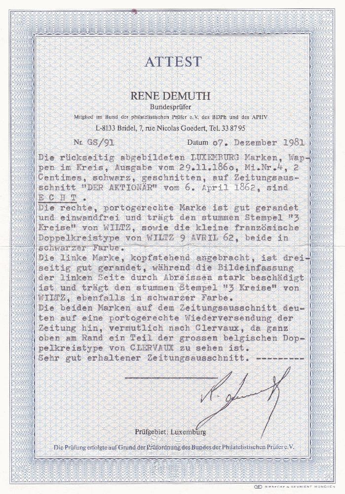 | Zusatzinformationen und Suchstichworte: | Siehe Attest 799; 1178; 1180: http://www.briefmarken-atteste.de/atteste/zeigen/799 http://www.briefmarken-atteste.de/atteste/zeigen/1178 http://www.briefmarken-atteste.de/atteste/zeigen/1180 Prvenienz: Isac Seligson, Corinphila 68, 25-30. Oktober 1982, Los 5179; Corinphila 87, 25-30. Oktober 1993, Los 3049; Corinphila 133, 06-09. Juni 2002, Los 1689; Schlegel 14, 04-05 April 2014, Los 62. Siehe auch Attest 1180 und 1178. Zum Porto und Weiterleitung: Siehe Attest 799. |