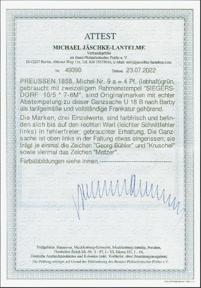 | Prüfer: | Jäschke-Lantelme, Michael (BPP (Bund Philatelistischer Prüfer)) |