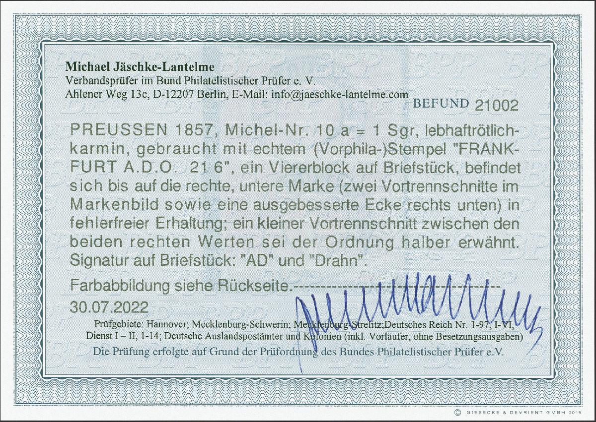 | Prüfer: | Jäschke-Lantelme, Michael (BPP (Bund Philatelistischer Prüfer)) |