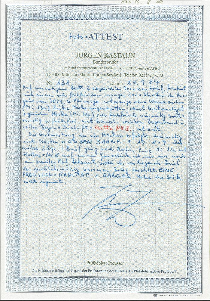 | Prüfer: | Kastaun, Jürgen (BPP (Bund Philatelistischer Prüfer)) |