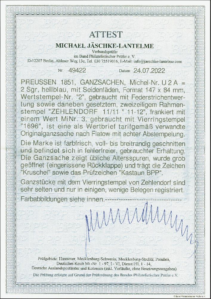 | Prüfgebiet: | Altdeutschland Preussen Ganzsachen |