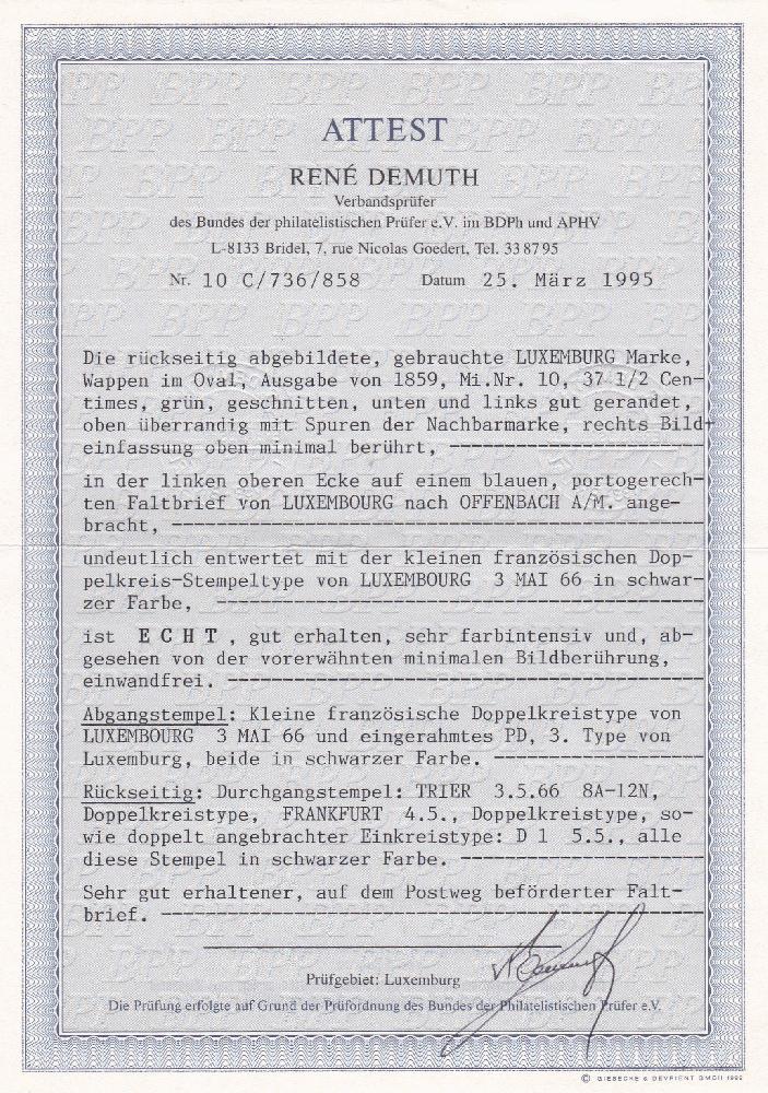 | Prüfer: | Demuth, René (BPP (Bund Philatelistischer Prüfer)) |