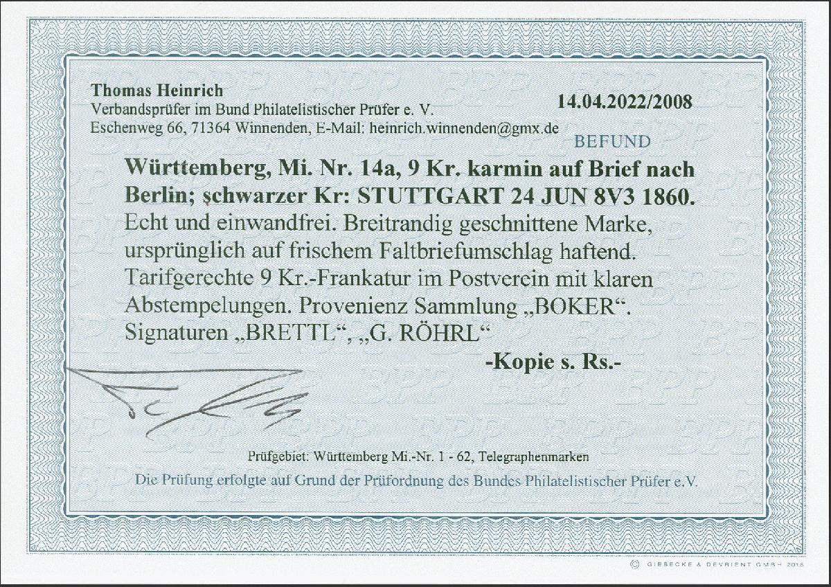 | Prüfer: | Heinrich, Thomas (BPP (Bund Philatelistischer Prüfer)) |