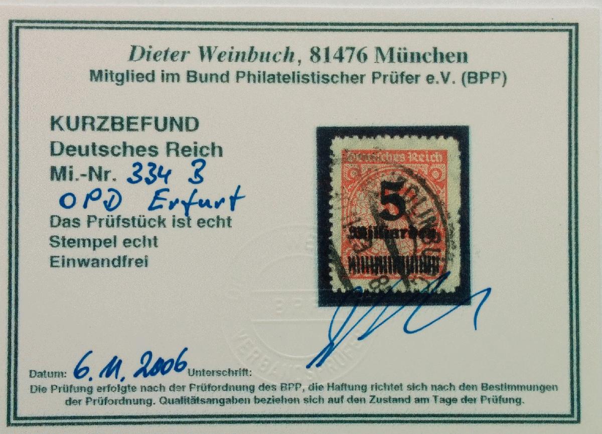 | Prüfgebiet: | Deutsches Reich 1919 - 1923 (Mi-Nr. 107 - 343) |