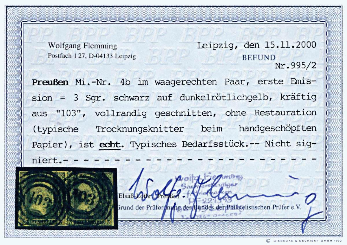 | Prüfer: | Flemming, Wolfgang (BPP (Bund Philatelistischer Prüfer)) |