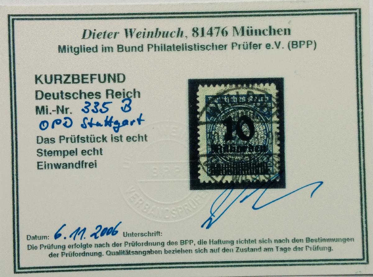 | Prüfgebiet: | Deutsches Reich 1919 - 1923 (Mi-Nr. 107 - 343) |