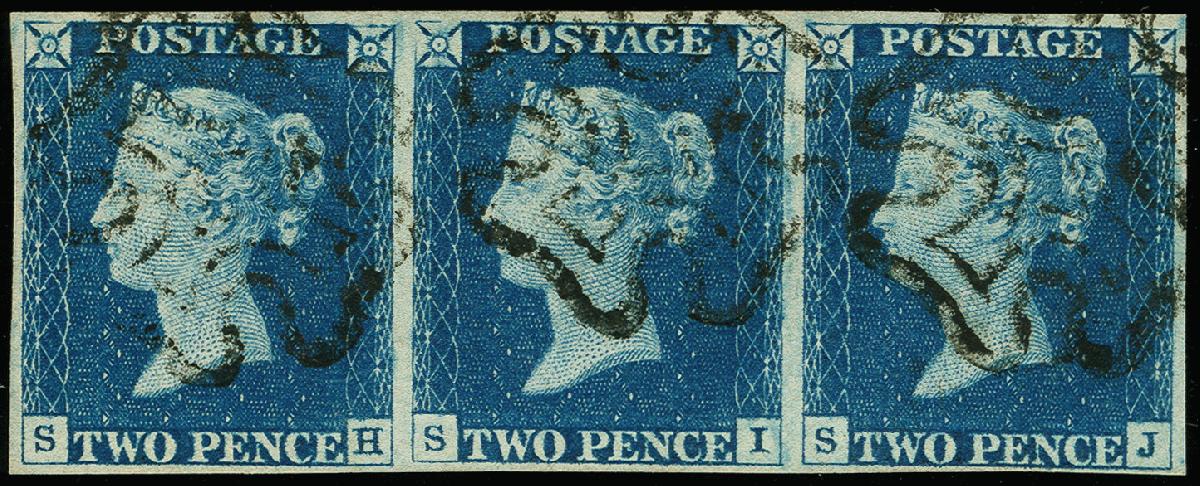 | Zusatzinformationen und Suchstichworte: | 369. Auktion Heinrich Köhler 1. Juni 2019 in Stockholm Los 502 1840, Victoria 2 Pence blau, Platte 1, horizontaler Streifen von 3, SH-SJ, schöne tiefe und brillante Farbe, reichlich bis meist große Ränder, leicht aufgehoben durch schwarzes Malteserkreuz, sehr fein. Zertifikat K.-A. Louis BPP (2018) (SG 5) Ausruf 800,00 EU R Zuschlag 1.500,00 EUR (aus der Sammlung Erivan Haub) |