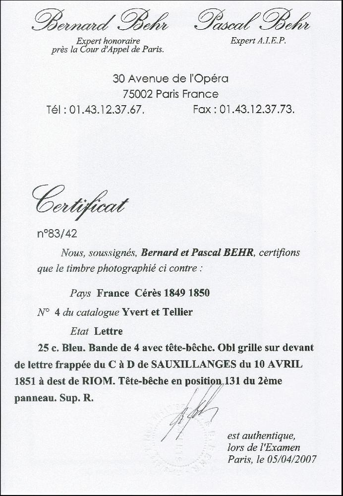 | Prüfer: | Behr, Bernard und Pascal (AIEP (Association internationale des experts en philatélie)) |