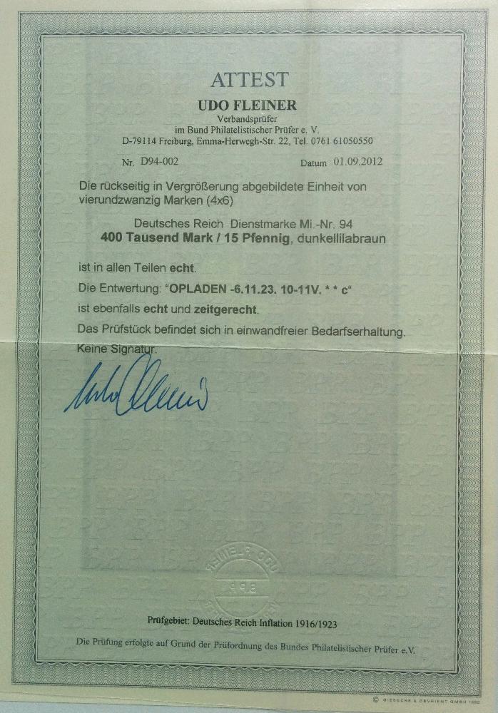 | Prüfer: | Fleiner, Udo (BPP (Bund Philatelistischer Prüfer)) |