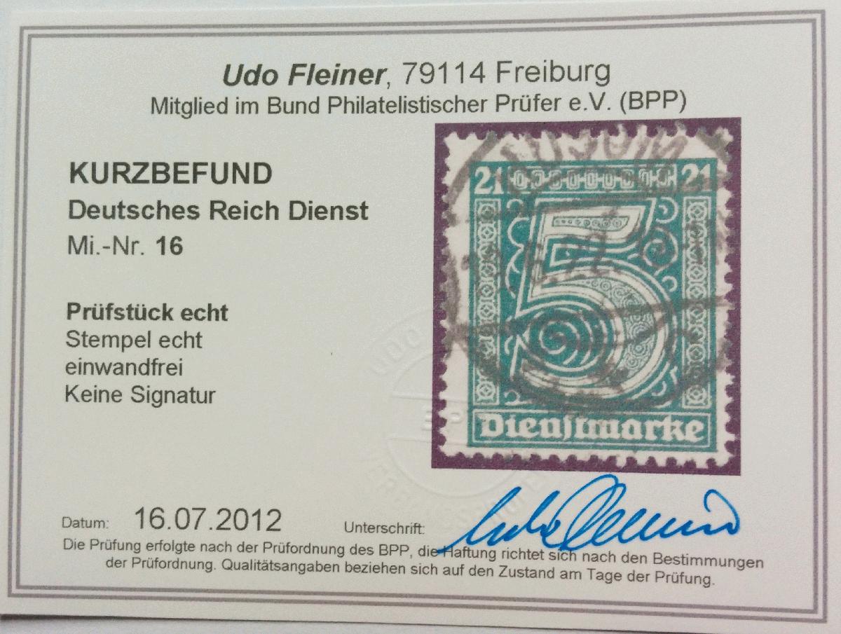 | Prüfgebiet: | Deutsches Reich Dienstmarken 1874 - 1945 |