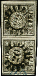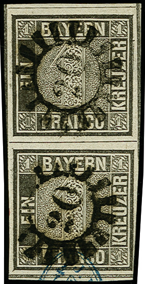 | Zusatzinformationen und Suchstichworte: | 366. Auktion Heinrich Köhler Auktionstermin 19.–24.03.2018 Los 2554 1 Kr. schwarz, Platte 2, senkrechtes Paar, rechts unten voll-, sonst allseits breit- bis überrandig mit zumindest Teilen aller Zwischenlinien, jeder Wert mit zentrischer Nr. "20" BAMBERG, auf der unteren Marke kleiner Teil eines blauen Absenderstempels; ein attraktives und seltenes Paar in tadelloser Erhaltung, Luxus, Fotoattest Schmitt BPP (2009) Zuschlag 3.200,00 EUR |
