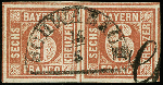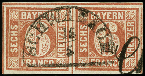 | Zusatzinformationen und Suchstichworte: | 366. Auktion Heinrich Köhler Auktionstermin 19.–24.03.2018 Los 2585 6 Kr. braunorange mit waagerechten Paar, allseits sehr breitrandig mit Teilen aller Zwischenlinien, vom oberen Bogenrand stammend, schön entwertet durch zentrischen Halbkreis "SCHWABACH 15/5" und Teil eines Chargé-L1, tadellos, Luxus, Fotoattest Brettl BPP (1982) Zuschlag 1.100,00 EUR |