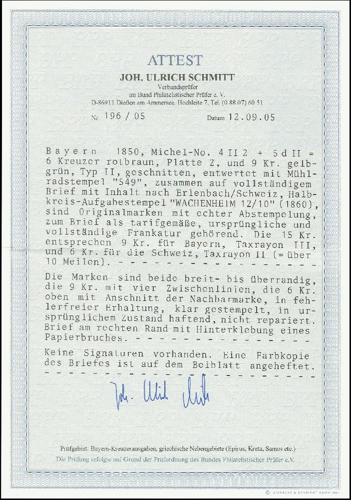 | Prüfer: | Schmitt, Joh. Ulrich (BPP (Bund Philatelistischer Prüfer)) |