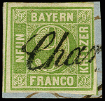 | Zusatzinformationen und Suchstichworte: | 366. Auktion Heinrich Köhler Auktionstermin 19.–24.03.2018 Los 2679 9 Kr. gelblichgrün, voll- bis meist breitrandig mit alleiniger Entwertung durch Schreibschrift-L1 "Char(gé)" auf kleinem Briefstück, Pracht, sign. Brettl BPP mit Fotobefund (1999) Zuschlag 150,00 EUR |