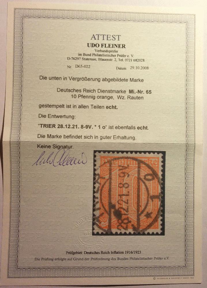 | Prüfgebiet: | Deutsches Reich Dienstmarken 1874 - 1945 |